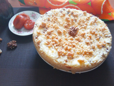 Испекла ватрушку с творогом в мультиварке. Ингредиенты взяла по рецепту, на мой вкус начинка оказалась слишком сладкой, в следующий раз уменьшу количество сахара как минимум на одну треть, из сухофруктов взяла изюм и курагу( её порезала на кусочки), грецкий орех добавила в ту часть теста, которая высыпается сверху на творожную массу. Выпекала ватрушку при температуре 150 в течение часа ( у меня время и температура выставляются в ручном режиме) После завершения программы ватрушку оставила остывать в мультиварке, только потом с помощью чаши для варки на пару вытащила. Но часть теста присохла ко дну мультиварки ( не подгорела, а именно присохла), из чего я сделала вывод, что нужно было выпекать 45 минут, а температуру увеличить до 180, или положить на дно бумагу для выпечки. Подсушенное тесто я аккуратно соскребла ложкой и использовала в качестве хрустящей крошки для посыпки верха готовой ватрушки. Получилось интересное сочетание нежной творожной начинки с хрустящими крошками. В целом рецепт мне понравился, внесу коррективы по количеству сахара и особенностям моей мультиварки и буду с удовольствием пользоваться этим рецептом! Спасибо, anvara!
