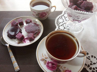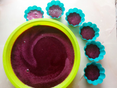Слегка остудите клюквенный сок и вылейте в застеленную пергаментом прямоугольную форму или разлейте по небольшим порционным формочкам.