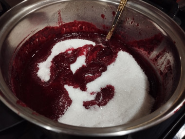 Получившееся клюквенное пюре протрите через сито, чтобы получить полностью однородную массу без твердых частичек.