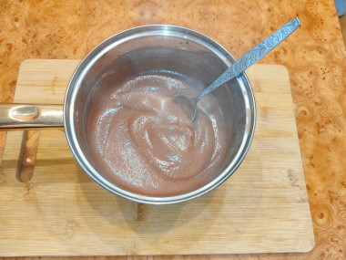 Возьмите подходящие формы для порционной подачи. Разлейте еще горячий пеламуши по ним. Оставьте десерт остыть на столе до комнатной температуры, а затем переложите в холодильник до полной стабилизации.