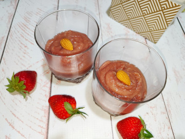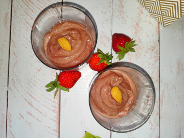 Хотелось чтобы пеламуши имело вид пасочки и подать на блюде в перевёрнутом виде, но не застыло суфле до нужной консистенции. В следующий раз попробую подольше проварить, чтобы было погуще.