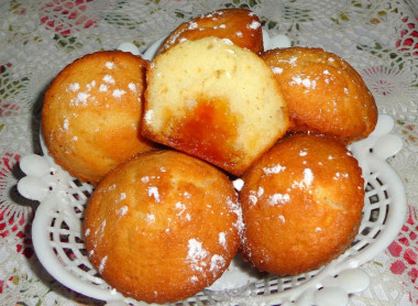 Кексы с джемом внутри готовятся очень просто, специально выбрала этот рецепт для дочки, она хотела сама что-нибудь приготовить. Получилось очень вкусно. Дочь довольная как слон, ну и я рада!