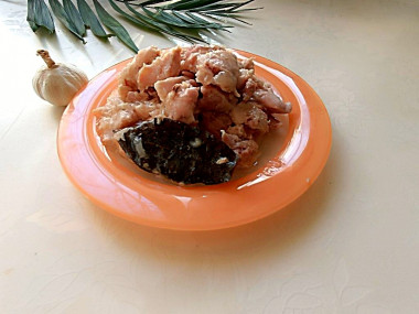Всё что приготовлено своими руками, всегда вкуснее и полезнее. Вот и тушëнка из курицы в банке очень вкусное блюдо. Сначала нужно отделить мясо от костей и кожи . У меня была целая тушка курицы. Мясо нужно посолить и оставить для пропитки минут на 10 . Кости и кожу положила в кастрюлю и поставила на сильный огонь. Как только бульон закипит, надо снять пенку, убавить огонь, я убавила на 3 . И оставить томиться под крышкой на 2 часа. Бульон должен слегка булькать. Теперь займëмся мясом. На дно банки кладëм три горошины душистого перца , лук нарезанный кольцами и один лавровый лист. Банка и крышка должны быть простерилизованы любым способом. Затем кладëм мясо в банку, укладываем плотнее и оставляем 3 сантиметра от верха горлышка банки. Сверху накрываем фольгой или пергаментом, предварительно проколов вилкой. Ставим в холодную духовку на противень. Выставляем температуру 200 градусов. Как только тушëнка закипит, убавляем до 100-120 градусов. И оставляем тушиться на 3-4 часа. Когда наш бульон будет готов, выключаем и ждем приготовления тушëнки. По истечении 4 часов, вытаскиваем банку из духовки, заново доводим бульон до кипения и наливаем его до верха банки. Закручиваем крышкой и ставим под одеяло, переворачивать банку не обязательно. Из одной курицы у меня получилась одна 450 граммовая банка.