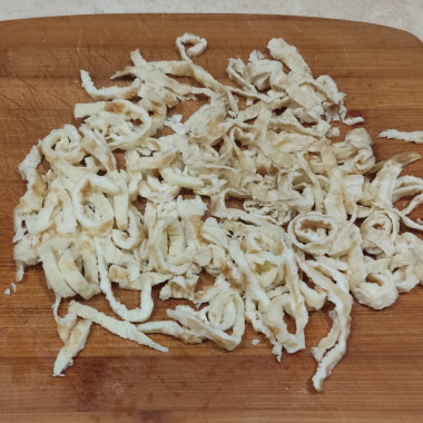 Какой же вкусный салатик я приготовила, благодаря рецепту автора сайта. Интересное сочетание ингредиентов и это салат Римский говядиной и яичными блинчиками. Говядину я предварительно отварила и нарезала соломкой.