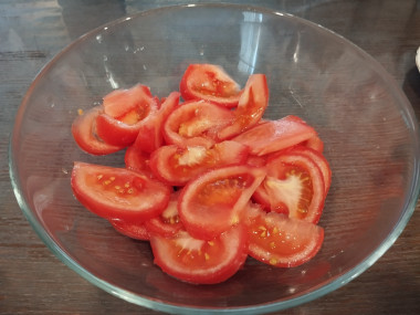 Помидоры выбирайте сочные, но плотные. Мягкие плоды плохо держат форму, в процессе нарезки и приготовления они расползутся в бесформенную массу и испортят внешний вид блюда.