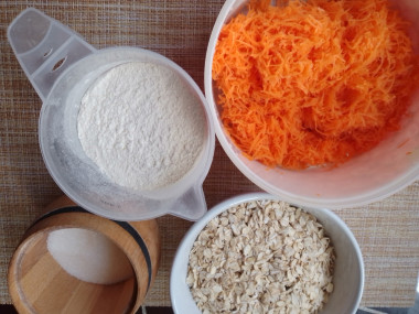 Калорийность продуктов: Морковь, Мука, Сахар, Растительное масло, Соль, Апельсиновая цедра, Разрыхлитель, Ванильный сахар, Хлопья