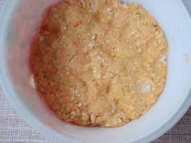 Тестом это конечно сложно назвать скорее соединила все продукты в единую массу. Она хорошо держалась между собой и не крошилась.