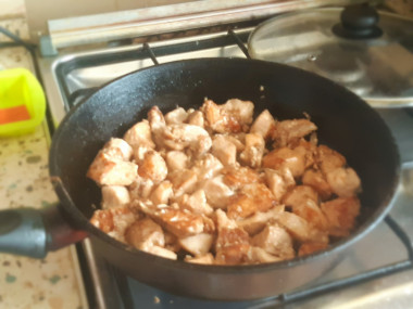 Вернувшись, выложила все на сковородку и стала обжаривать, дальше все по рецепту.