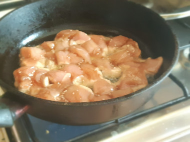 Быстро приготовила маринад (необычное сочетание продуктов), закинула туда кусочки куриного филе и пошла делать свои дела.