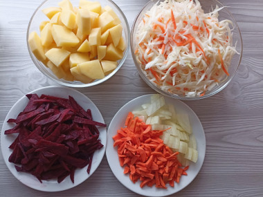 Листая ленту увидела рецепт борща с кислой капустой и свеклой и поняла, что первых блюд с кислой капустой я не пробовала никогда. Решила это исправить.