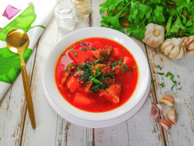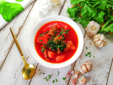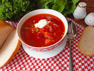 Борщ с кислой капустой и свеклой - распространенное первое блюдо у всех славянских народов. Название изначально произошло от растения борщевик, который позже с успехом заменила свекла.