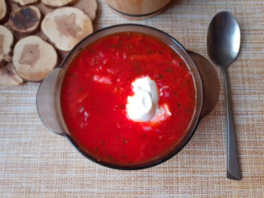 Борщ мне очень понравился! Он вышел  густой, насыщенный. Заправила борщ зеленью и майонезом. Получилось  ароматно и вкусно!