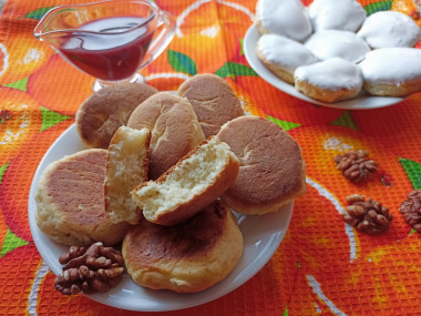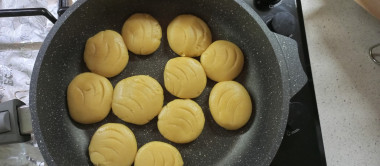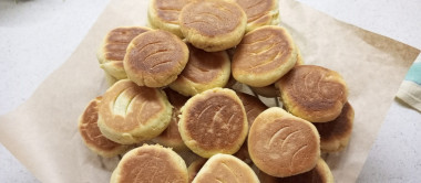 Испекла печенье на сметане на сковороде. Желток растерла с солью и сахаром, добавила сметану, растительное масло, соду, погашенную с уксусом, всыпала муку, замесила тесто. Муки у меня ушло немного больше ( возможно потому что сметану набирала в ложку с горкой), тесто получилось мягким, слегка липковатым, кусочки теста обваливала в муке, скатывала из них небольшие шарики и формировала плоские печеньки. Выпекала на сухой сковороде с антипригарным покрытием. При выпечке печенье немного увеличивается в размере, получается нежным, мягким, очень вкусным. Оставшийся яичный белок взбила с сахарной пудрой и часть печенья превратилась в пряники с белковой глазурью ( для сладкоежек))). Спасибо автору за рецепт! Просто, быстро и очень вкусно!