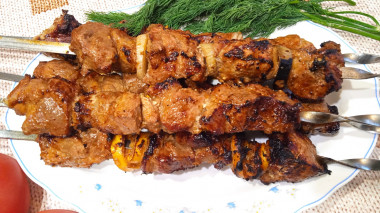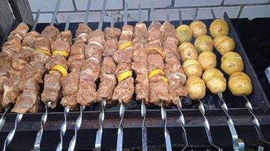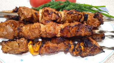 Необыкновенно вкусный шашлык получился по этому рецепту. Нам очень понравился маринад, но жарили мы шашлык на мангале. Ещё лимонно-луковый маринад хорош тем, что мясо в нем можно мариновать всего 3-4 часа. Этого вполне достаточно, чтобы мясо приобрело необычный цитрусовый аромат. Мы брали свиную шею, это идеальное мясо для идеального шашлыка, по крайней мере, для нас. Специи – обычный шашлычный набор. На 2.5 кг мяса мы взяли 1,5 кг лука. Часть измельчили в блендере, часть традиционно порезали колечками и добавили в маринад, потом пожарили с мясом на шампурах. Муж лимоны не выбросил, а пожарил на шампурах вместе с мясом. Шашлык в итоге получился нежным, сочным, ароматным. Сочетание лука и лимона придают неповторимый вкус.