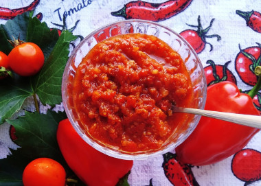 Подавайте аджику к мясу и птице, к любым гарнирам или используйте в качестве основы для пиццы или намазки на лаваш с зеленью и сыром. Приятного аппетита!