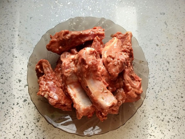 Нарежьте ребрышки на части.