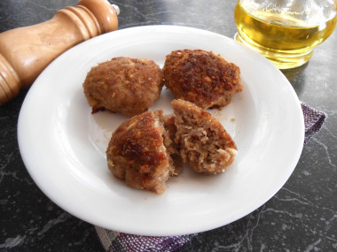 Сковороду разогрейте до горячего состояния и налейте на неё немного растительного масла для жарки. Выложите на неё сформированные котлеты и обжаривайте на небольшом огне с двух сторон, до золотистой корочки. Каждую сторону держите около 5 минут, чтобы мясо успело проготовиться. Для уверенности в конце можете накрыть сковороду крышкой и подержать так котлеты пару минут.
