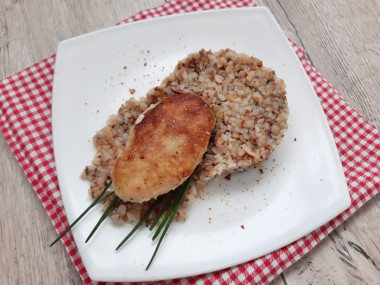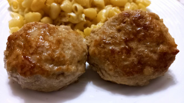 Взяла равное количество куриного и свиного мяса, чтоб было не слишком жирно для ребёнка. В котлетную массу помимо лука добавила ещё пару зубчиков чеснока. Вместо сушеной зелени решила приправить фарш молотым кориандром 1 ч.л. На гарнир готовила гречку для взрослых и макароны для ребёнка. Улетели котлетки на ура!