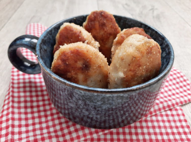 Руками сформируйте небольшие котлетки круглой или овальной формы и обваляйте их в панировочных сухарях. Сухари вы можете взять готовые или сделать их самостоятельно дома.