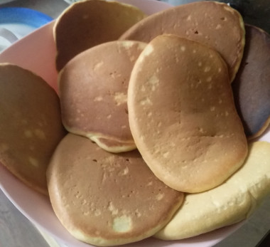 5. Жарим панкейки с обеих сторон на сухой сковороде без добавления масла. На один панкейк идет три столовые ложки теста.