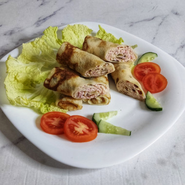 Блины с любой начинкой всегда очень вкусные! И вот блины с колбасой и сыром не исключение,отличная замена бутербродам на завтрак!