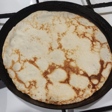 Для начала испекла блинчики. Для этого яйца взбила слегка взбила с солью и сахаром. Добавила молоко,перемешала. Затем добавила муку,перемешала. Воды добавляла понемногу, смотря на консистенцию. Выпекала блинчики на сковороде, смазанной растительным маслом.