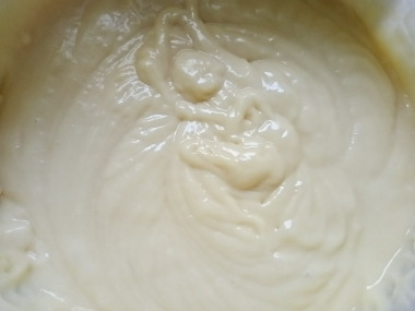 Перемешивайте миксером на низкой скорости или венчиком. Важно, чтобы в тесте не осталось никаких комочков. В зависимости от влажности кефира и размера яиц муки может понадобиться больше или меньше. Смотрите на консистенцию - тесто должно быть средней густоты. Густое, но текучее.