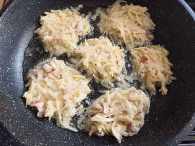 На сковороде разогрейте растительное масло. Выложите на сковороду тесто столовой ложкой, формируя брамбораки. Обжарьте их с двух сторон до золотистого цвета. О том, как подобрать идеальную сковороду, а также как правильно выбрать растительное масло, читайте в отдельных статьях, ссылки в конце рецепта.