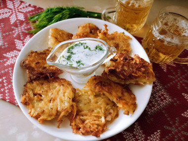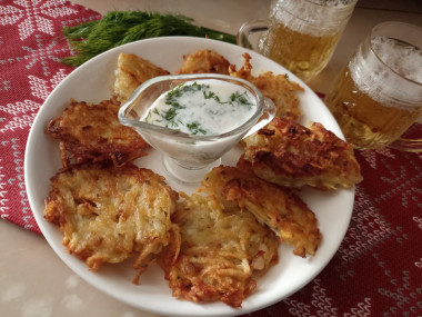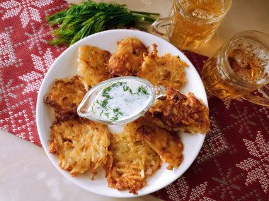 Выложите готовые брамбораки на салфетку. Подавайте к столу в теплом виде вместе с основными блюдами. Приятного аппетита!