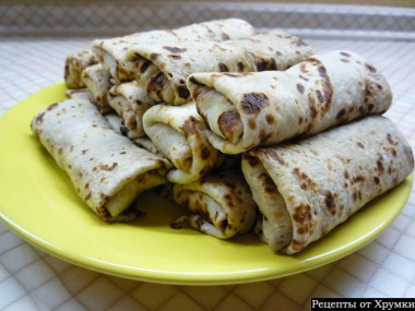 Только готовятся мясные блинчики на бездрожевом тесте. И чем тоньше лист, тем больше хвалы хозяйке дома. И еще мы перед подачей обжариваем их на растительном, а еще вкуснее на топленом масле И самый отпад - едим(ай,ай,ай сколько калорий...) их со сметаной.(Что только вкусного не съешь на Новый год) *