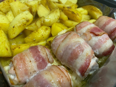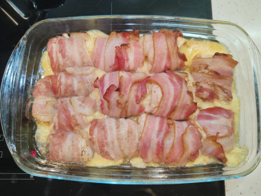 Но бекон закончился раньше, поэтому остатки просто сложила чередуя с сыром.