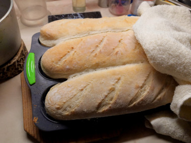 Из указанного количества продуктов получится 1 средний багет длиной 25-30 см.