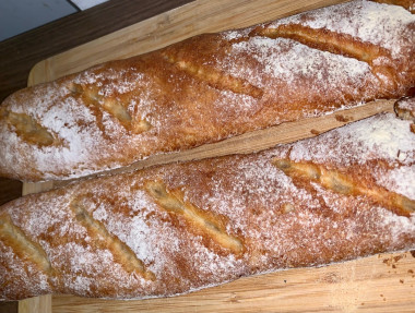 СмехХороший и простой рецепт, я выдержал тесто час перед формовкой и за полчаса до формирования сложил и обмял. Поставил на дно духовки воду, на первые 15 минут. Дрожжи оказались ядерные, тесто подняли в духовке и багеты превратились в мини батоны Смех Тесто замесил в хлебопечке, завтра у тестя за столом с икоркой испробуем:)