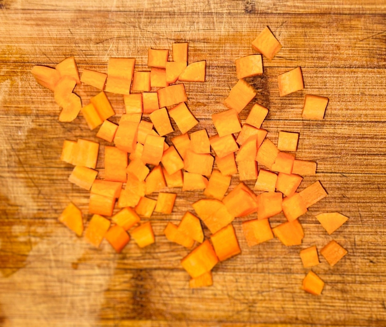 Куриное мясо положите в кастрюлю залейте чистой холодной водой и поставьте вариться на средний огонь. Я предварительно сняла с него кожицу. С выбором идеальной кастрюли поможет статья о кастрюлях, ссылка в конце рецепта. Пока бульон будет закипать, подготовьте овощи. Лук нарежьте небольшими кубиками.Шаг 3: