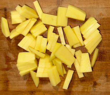 Картофель нарежьте крупными кубиками.Шаг 5: