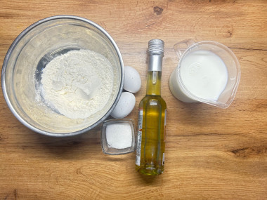 Как сделать фаршированные блины с печенью куриной луком и морковью? Сначала подготовьте продукты для блинов. Молоко подойдет любой жирности, можете разбавить его водой. Количество соли и сахара регулируйте по своему вкусу. Растительное масло берите без запаха. Вы также можете испечь блины по любому другому рецепту.