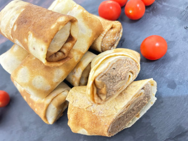 Блины с начинкой из куриной печени готовы. Приятного аппетита!