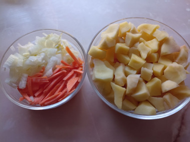 Как сварить суп с мясными фрикадельками? Подготовьте все необходимые ингредиенты. Овощи помойте и очистите. Картофель нарежьте соломкой или кубиками по вашему вкусу, главное – не крупно. Морковку натрите на терке. Лук мелко нашинкуйте.