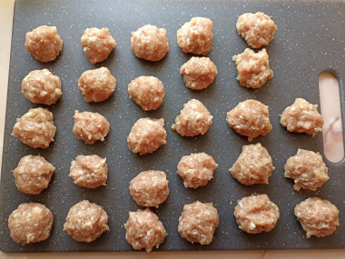 Смоченными в холодной воде руками сформируйте небольшие шарики-фрикадельки.