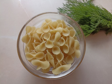 Всыпьте вермишель. Добавьте лавровый лист. Добавьте соль и перец по вкусу. Варите суп до готовности картофеля и вермишели. Они должны стать мягкими, но не развариться. Всыпьте мелконарезанную зелень и перемешайте. Выключите огонь и дайте супу немного потомиться под закрытой крышкой.