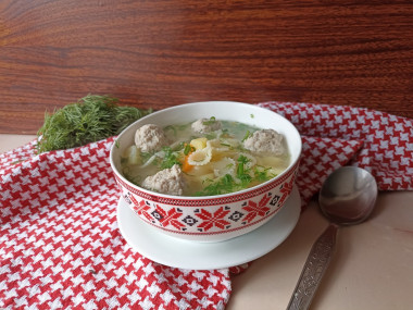 Мой ребёнок очень любит суп с мясными шариками. Приготовить такой обед абсолютно не составило труда, всё очень просто и быстро. Получился сытный, ароматный, наваристый суп с мясными фрикадельками. При подаче насыпала в тарелочки измельченный укроп, что придало красок. Очень вкусно! Спасибо!