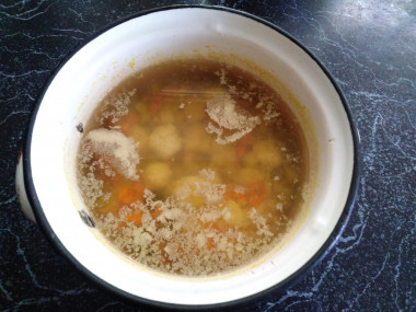 Замечательный супчик! Приготовила на обед суп с мясными фрикадельками по этому рецепту. Продукты все были под рукой. Овощи почистила, нарезала и поставила вариться. Фарш брала готовый, который дополнила яйцом, солью и перцем по рекомендации автора. Сделала небольшие шарики из фарша и опустила к овощам. Варила ровно 20 минут, я не добавляла других специй и лавровый лист по своим соображениям. А вот на настаивание у нас не хватило терпения. Сразу разливала в супницы горячий суп.