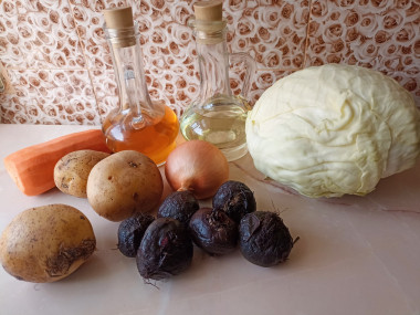 Решила разобрать морозильную камеру и наткнулась на замороженные и уже натертые морковь и свёклу. Решила сообразить борщ и докупила молодую капусту. Так как борщ хотела готовить без мяса и фасоли, я нашла через поисковик по ингредиентам овощной борщ. Мне понравился рецепт и, чётко следуя отличном описанию, я начала готовить. Начистила и нарезала овощи, сделала зажарку, как описывает автор. Только уксус не добавляла - кушать будет и ребёнок, поэтому цвет немного потерялся. Капусту с картошкой отварила, добавила немного горошин перца и лаврушку по рекомендации автора. В конце положила зажарку. Готово! Лёгкий и простой способ приготовить вкусный обед для всей семьи без мяса. Получился великолепный овощной борщ и довольно быстро. Очень вкусный, ароматный и лёгкий борщик. Спасибо!