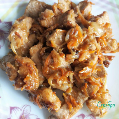 Мясо размораживаем, вымачиваем, нарезаем на небольшие кусочки. По желанию, кто не любит свинину, может приготовить это блюдо из говядины, хуже не будет.