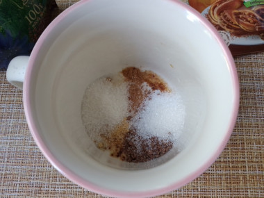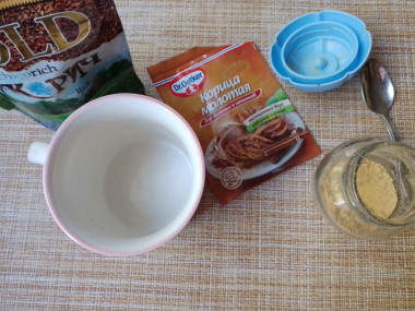1. Насыпать цикорий в чашку, добавляем корицу и имбирь, перемешиваем.