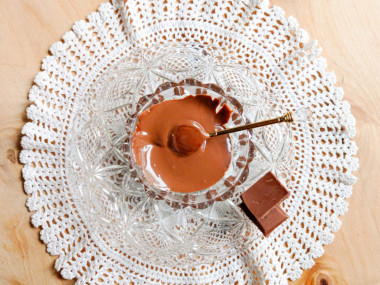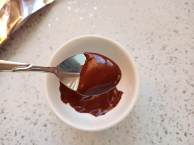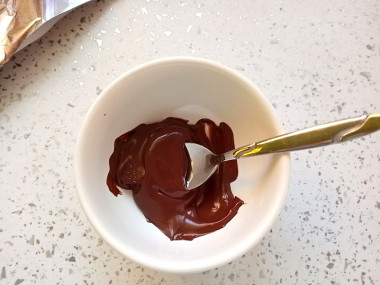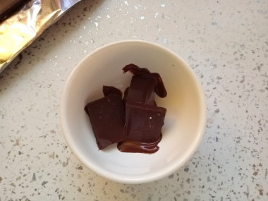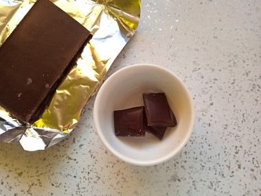 У меня дома достаточно тепло, поэтому плитка молочного шоколада уже была немного мягкая. Так что я включила микроволновку на 40 секунд (800Вт). Этого оказалось достаточно, чтобы шоколад полностью растаял.