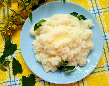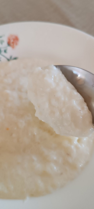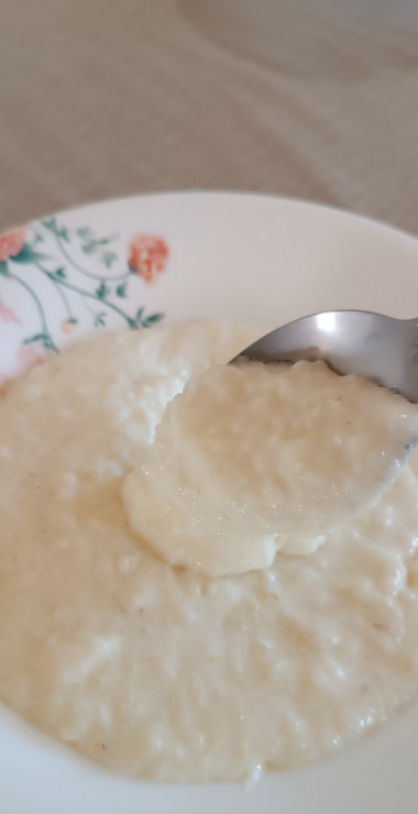 Каша получилась очень нежной и вкусной. Мои дети любят рисовую кашу более воздушной, поэтому я прохожусь погруженным блендером раза два, но не больше.