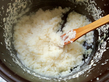 Включите программу "молочная каша" на вашей мультиварке. Время приготовления может отличаться в зависимости от модели. У меня на это ушло 30 минут. После сигнала о завершении готовки я оставила функцию "подогрев" примерно на 10 - 15 минут, дав каше потомиться и выпариться лишней жидкости. О работе мультиварок читайте в статье в конце рецепта.