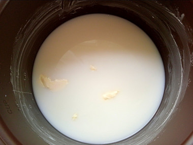 Выше уровня молока чашу смазать сливочным маслом /это не даст молоку подниматься/, остальное масло добавить в молоко.