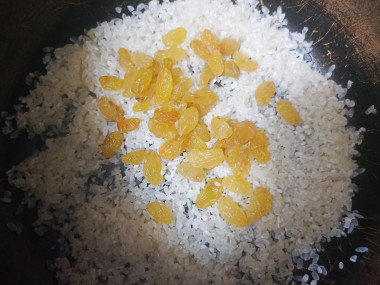 Подготовить продукты. Рис и изюм промыть до прозрачной воды. Как выбрать подходящий для приготовления каши рис вы узнаете прочитав статью на эту тему. Ссылка есть в конце этого рецепта.